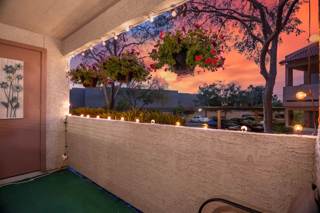 The outside patio lights are scheduled to turn on at 5:30pm, and will automatically turn off at 10:00pm. Of course, if you desire a different time setting, please reach out and we can adjust this timing remotely.